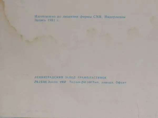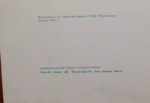 | Meer informatie | 1983 USSR Melodiya original press (Red Label) |