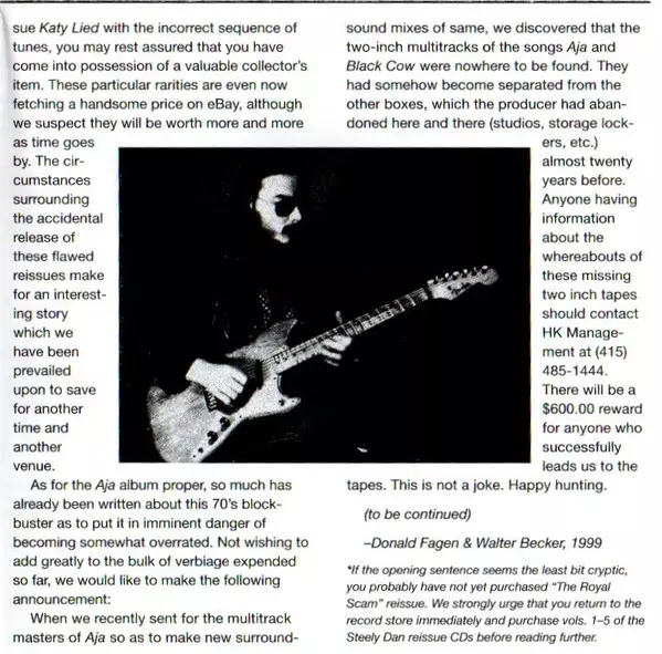 The brains behind the Steely Dan project, Walter Becker and Donald Fagen, were known for scaring their studio musicians with merciless criticism. Guitarist Dean Parks described their style as "a step beyond perfection". Arrangements were perfected to absolute perfection - only to be destroyed and re-recorded at the end so as not to lose the loos...