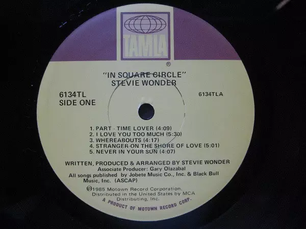 Stevie Wonder: In Square Circle versie op vinyl LP in standaard editie. Deze specifieke uitgave werd uitgebracht in VS bij uitgeverij Tamla in het jaar 1985. Album valt binnen het genre Pop, Funk / Soul en Soul.