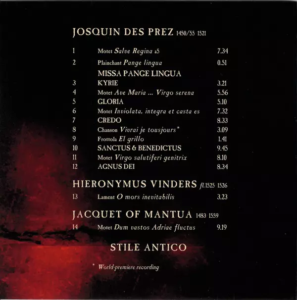 | Artiest | Josquin Des Prés | Stile Antico |