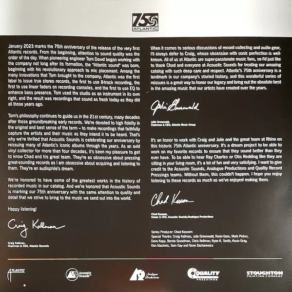 | Uitgever | Analogue Productions | Atlantic |