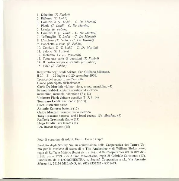 | Artiest | Stormy Six | Guido Mazzon | Tony Rusconi |