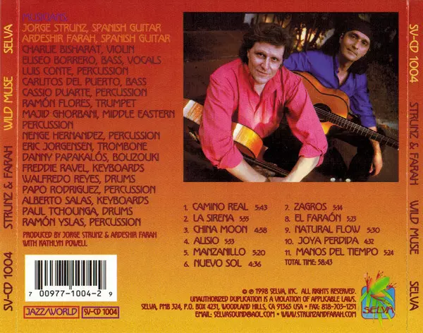 Strunz & Farah: Wild Muse versie op CD in standaard editie. Deze specifieke uitgave werd uitgebracht in VS bij uitgeverij Selva op 20. oktober 1998. Album valt binnen het genre Jazz, Latijnse muziek en Flamenco.