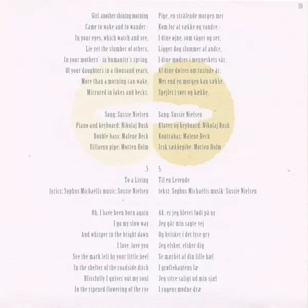 Double Bass Malene D. Beck | Lyrics By Karl Gjellerup | Music By, Vocals Sussie Nielsen | Piano Nikolaj Busk | Udu Siri Skamby | Violin, Mandolin Bjarke Falgren