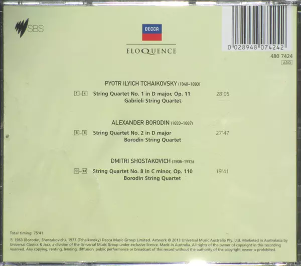 | Artiest | Pyotr Ilyich Tchaikovsky | Dmitri Shostakovich | Borodin String Quartet | Alexander Borodin | The Gabrieli String Quartet |