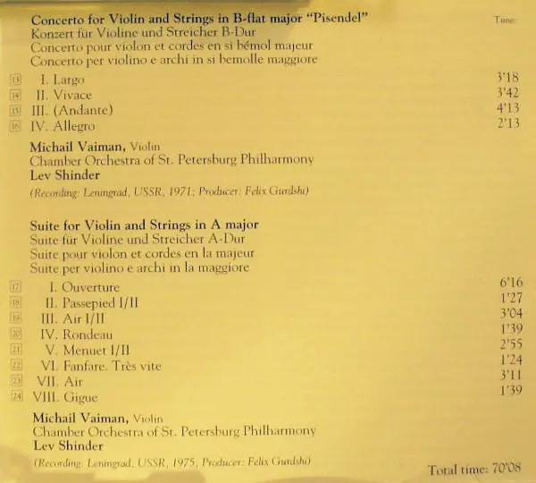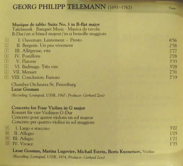 | Artiest | Georg Philipp Telemann | Leningrad Chamber Orchestra | Lazar Gosman | Камерный Оркестр Ленинградской Филармонии | Лев Шиндер |