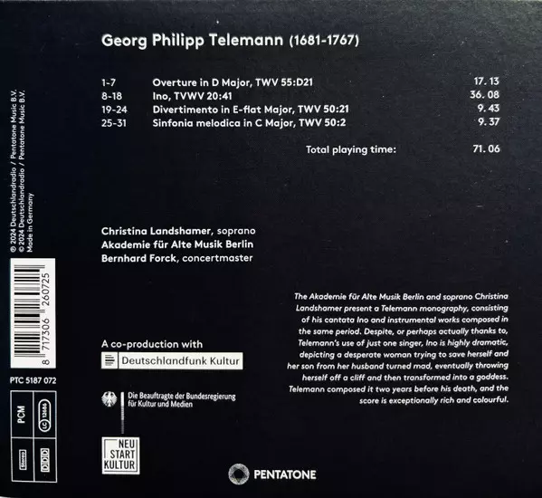 Artiest | Georg Philipp Telemann | Akademie Für Alte Musik Berlin | Christina Landshamer | Bernhard Forck |