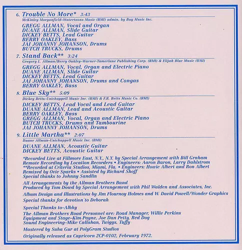 | Artiest | The Allman Brothers Band |