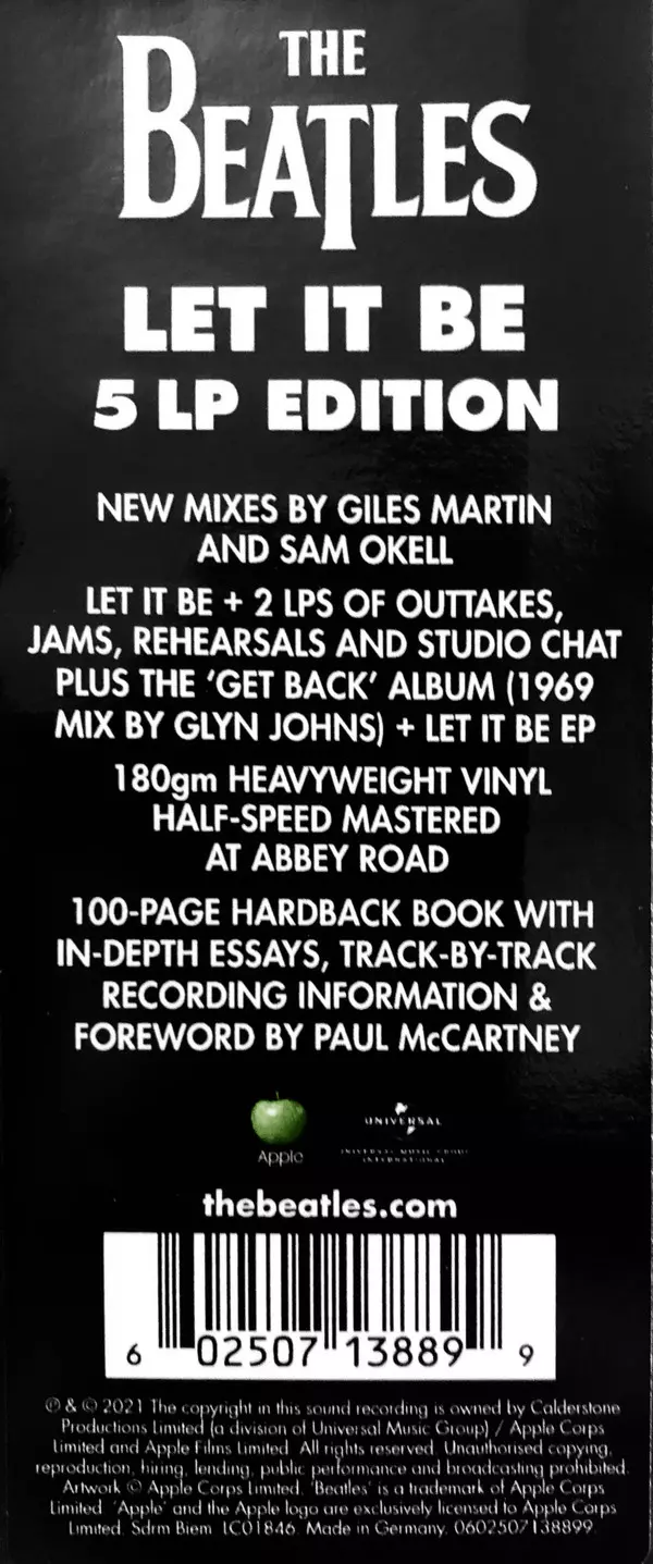 The Beatles: Let It Be DLX versie op vinyl 5LP/Doos in deluxe remastered 45 RPM editie. Deze specifieke uitgave werd uitgebracht in Wereldwijd bij uitgeverij Apple Records in samenwerking met Universal Music Group International op 15. oktober 2021.