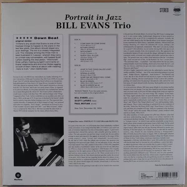 Eight months after his successful collaboration with Miles Davis on Kind of Blue, Evans recorded Portrait in Ja with a new group (the Bill Evans Trio).