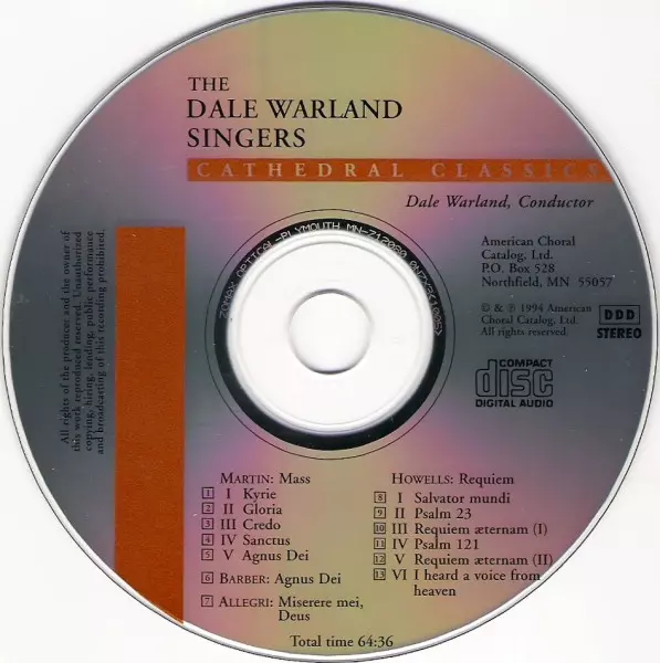| Artiest | Samuel Barber | Gregorio Allegri | Frank Martin | Herbert Howells | Dale Warland Singers |