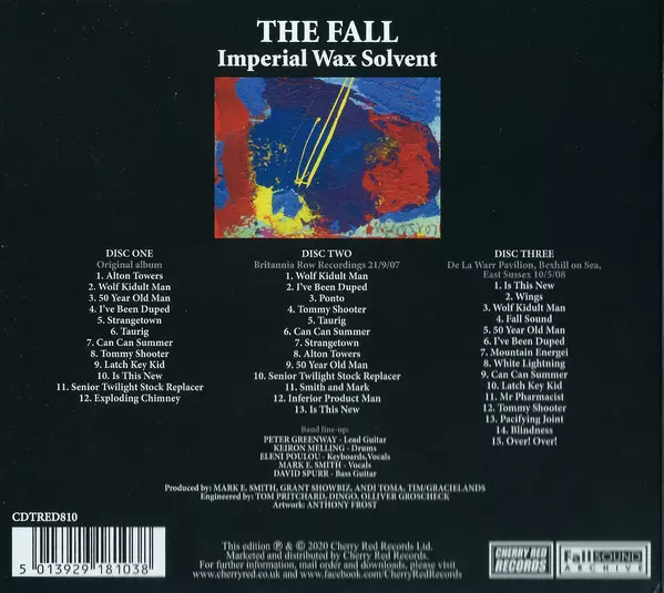 The Fall: Imperial Wax Solvent versie op 3CD in remastered editie. Deze specifieke uitgave werd uitgebracht in Verenigd Koninkrijk bij uitgeverij Cherry Red op 17. april 2026. Album valt binnen het genre Rock, Alternative rock en Punk.