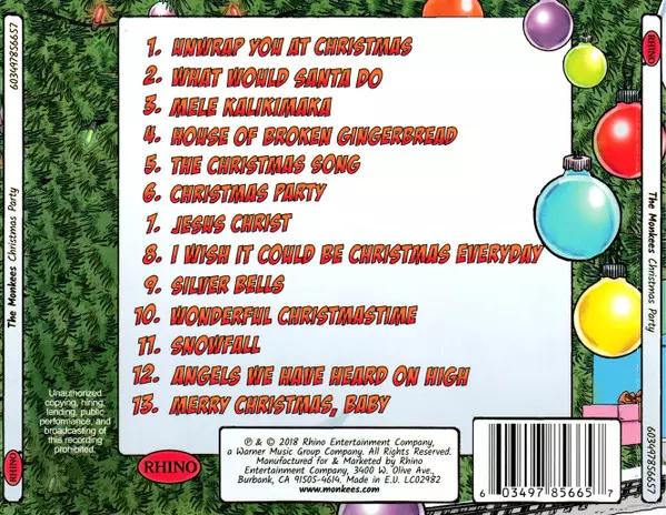 The Monkees: Christmas Party versie op CD in standaard editie. Deze specifieke uitgave werd uitgebracht in Verenigd Koninkrijk bij uitgeverij Rhino Records (2) op 2. november 2018. Album valt binnen het genre Rock, Pop Rock en Christmas.