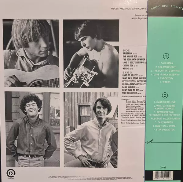 Bass Chip Douglas | Drums Eddie Hoh | Guitar Michael Nesmith | Lead Vocals, Synthesizer [Moog Synthesizer] Micky Dolenz | Organ Peter Tork | Written-By Michael Nesmith