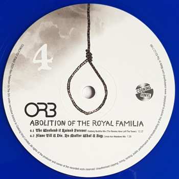 The Orb: Abolition Of The Royal Familia CLR | LTD versie op vinyl 2LP in gekleurde limited editie. Deze specifieke uitgave werd uitgebracht in Verenigd Koninkrijk bij uitgeverij Cooking Vinyl op 27. maart 2020. Album valt binnen het genre Elektronische muziek, Ambient, House en Dub. 180g Blue Coloured Vinyl Limited Edition.