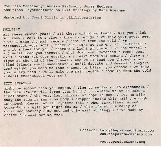 | Written-By The Pain Machinery | |||