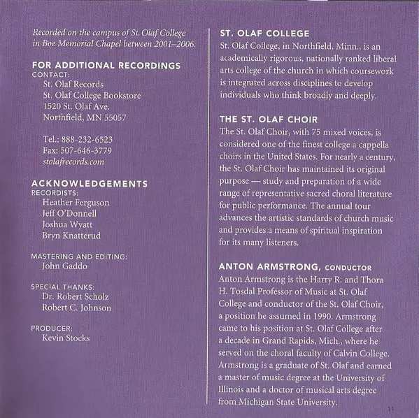 | Uitgever | St. Olaf Records |