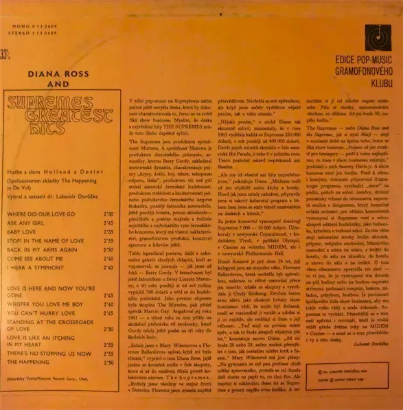 | Uitgever | Supraphon | Gramofonový Klub | Tamla Motown |