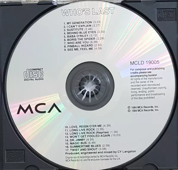 Who's Last is a 1984 album by the band The Who. It is their last album with drummer Kenney Jones and their last album with bassist John Entwistle.