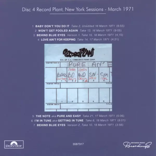 | CD4-7 | Behind Blue Eyes (Version 2, Take 10, March 18, 1971) | 3:58 min | |