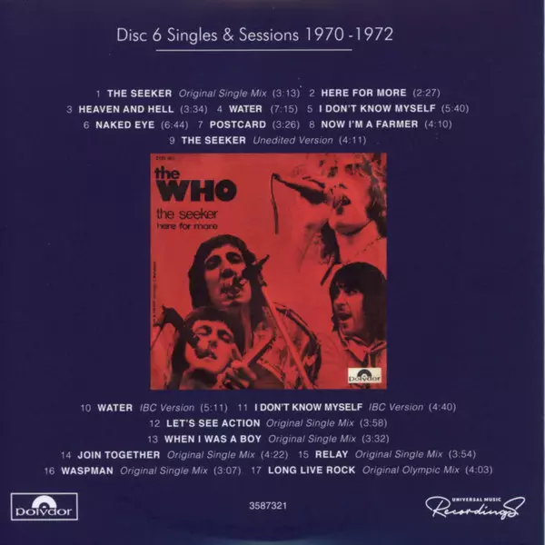 | CD6-1 | The Who: The Seeker (Original Single Mix) | 3:13 min | |
