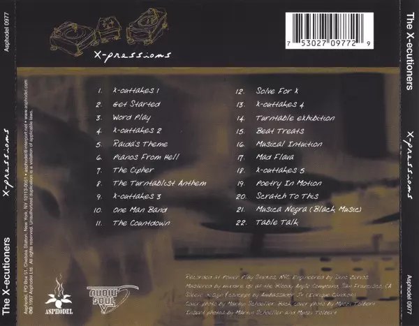 The X-Ecutioners: X-Pressions versie op CD in standaard editie. Deze specifieke uitgave werd uitgebracht in VS bij uitgeverij Asphodel in samenwerking met Audio Soul op 31. mei 2019. Album valt binnen het genre Hip Hop, Cut-up/DJ, Turntablism en Boom Bap.