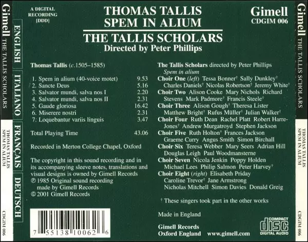 | Artiest | Thomas Tallis | The Tallis Scholars | Peter Phillips |