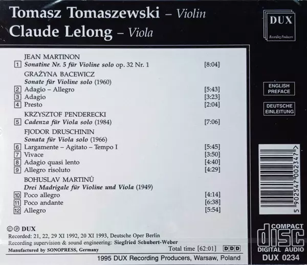 | Titel | Tomasz Tomaszewski – Violin, Claude Lelong – Viola |