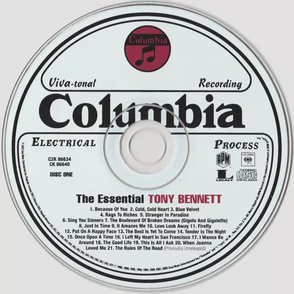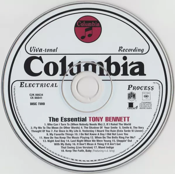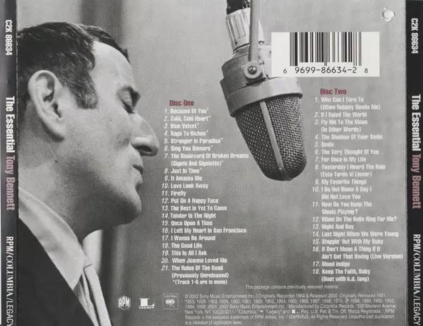 Tony Bennett: The Essential Tony Bennett versie op 2CD in standaard editie. Deze specifieke uitgave werd uitgebracht in VS bij uitgeverij RPM Records (7) in samenwerking met Columbia en Legacy op 23. juli 2002. Album valt binnen het genre Pop, Stage & Screen en Vocaal.