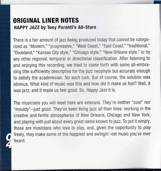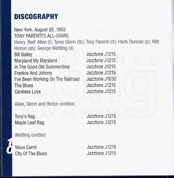 | Artiest | Tony Parenti's All-Stars |