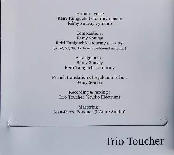 Trio Toucher: Hyakunin Isshu - 100 Tanka Songs versie op 2CD in standaard editie. Deze specifieke uitgave werd uitgebracht in Zwitserland bij uitgeverij Gallo (4) in samenwerking met Hototogisu op 11. december 2020. Album valt binnen het genre Folk, World, & Country en Jazz.