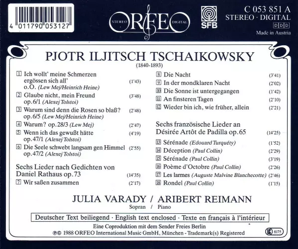 | Artiest | Pyotr Ilyich Tchaikovsky | Aribert Reimann | Iulia Várady |