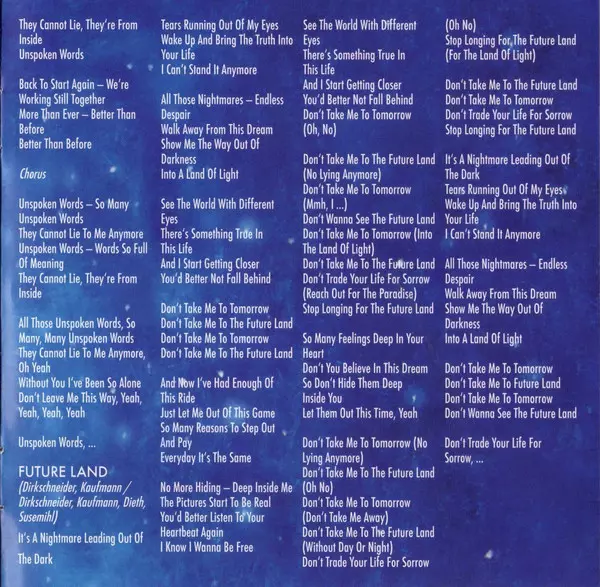 U.D.O.'s Faceless World, released in 1990, is full of heavy metal anthems. Tracks like "Faceless World", "Timebomb" and "Blind Eyes" are strong songs that are sure to make your head bang. With catchy riffs and powerful vocals, Faceless World is an album that is sure to get your adrenaline pumping. If you are a fan of heavy metal, then you need t...