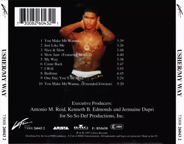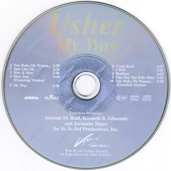 Usher: My Way versie op CD in standaard editie. Deze specifieke uitgave werd uitgebracht in Europa bij uitgeverij LaFace Records in samenwerking met Arista en BMG op 28. juli 2015. Album valt binnen het genre Funk / Soul en Contemporary R&B.