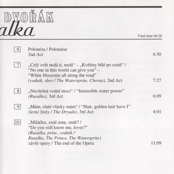 | Rusalka - Highlights From The Opera In 3 Acts, Op. 114 | 60:26 min |