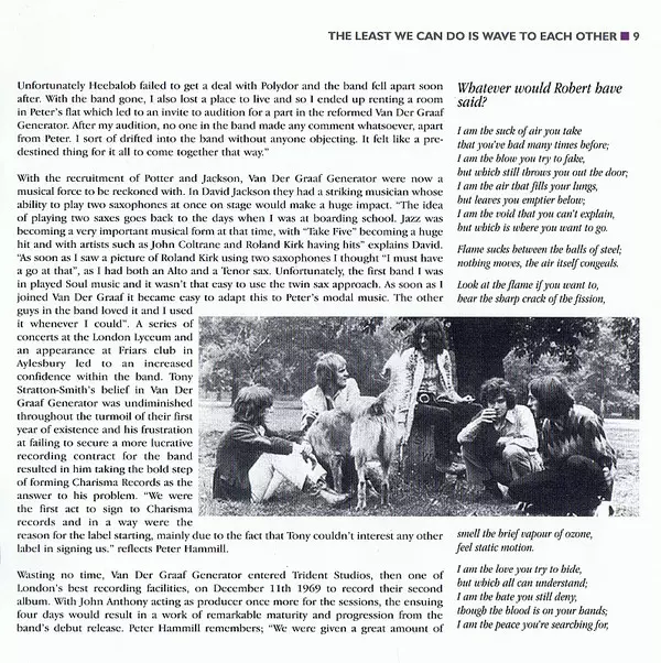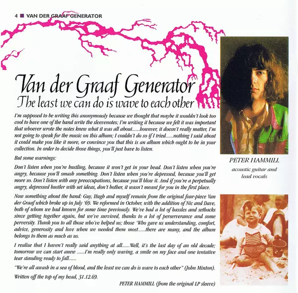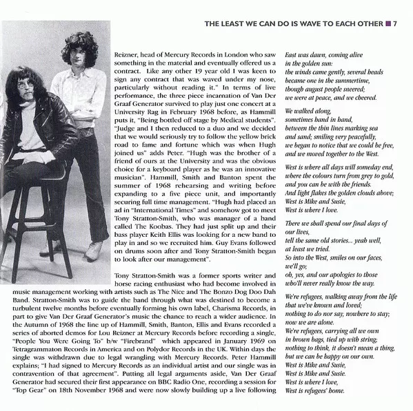 The album was recorded in four days in December 1969 and cemented VDGG's patented sound, with Refugees even making the Top 50 alongside favourites such as After The Flood and White Hammer. Today, it ranks along with In The Court Of The Crimson King Crimson as one of the best debuts of the year. The album included the beautiful, anthemic Refugees...