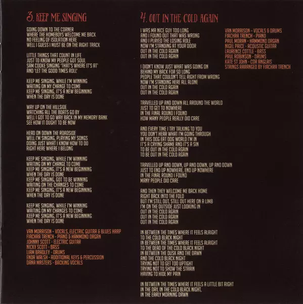 Keep Me Singing is the 36th studio album by the legendary Van Morrison. It contains 13 tracks - 12 original and one cover - the blues standard 'Share Your Love With Me'. https://youtu.be/W0IlS8V77I8