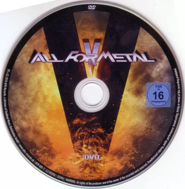 - The fifth installment of AFM Records' successful DVD+CD compilation "All For Metal" - featuring a DVD (32 music videos) plus a CD (15 tracks) - on "All For Metal Vol. V" features genre greats like Orden Ogan, Evergrey, Lordi, Leaves' Eyes, Danko Jones etc..