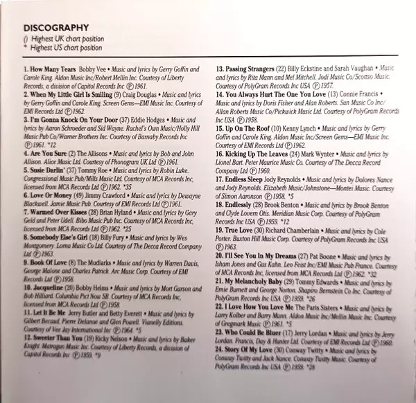 | 1 | Bobby Vee: How Many Tears | 2:05 min | |