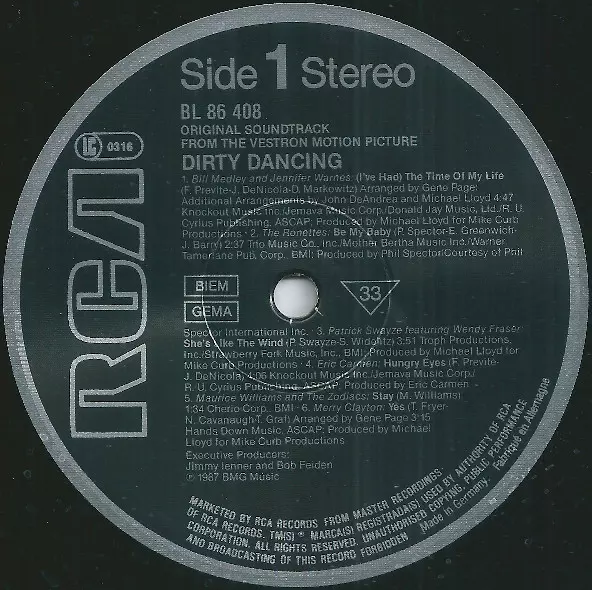 | A1 | Jennifer Warnes, Bill Medley: (I've Had) The Time Of My Life | 4:47 min | |