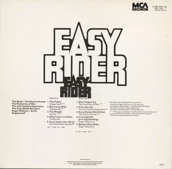 | Titel | Easy Rider - Songs As Performed In The Motion Picture |