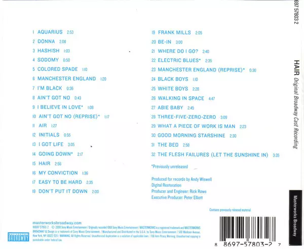 | Titel | Hair - The American Tribal Love-Rock Musical (The Original Broadway Cast Recording) |