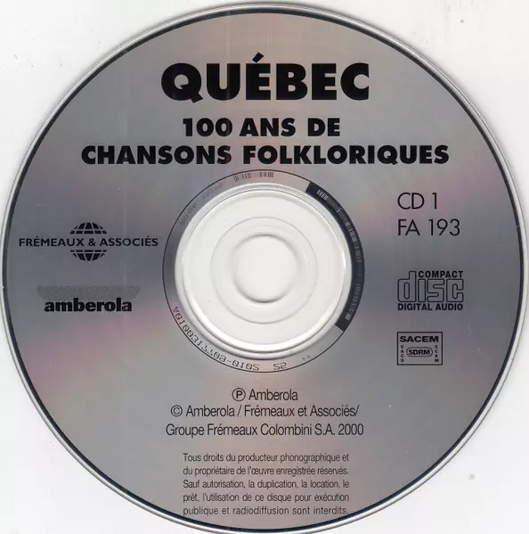 | Titel | Québec - Cent Ans De Chansons Folkloriques |