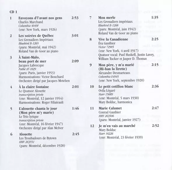 | 1-11 | Conrad Gauthier: Marie Calumet | 2:50 min | |