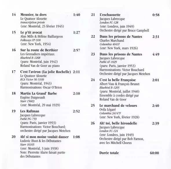 | 2-14 | Le Quatuor Alouette: Meunier, Tu Dors | 1:43 min | |