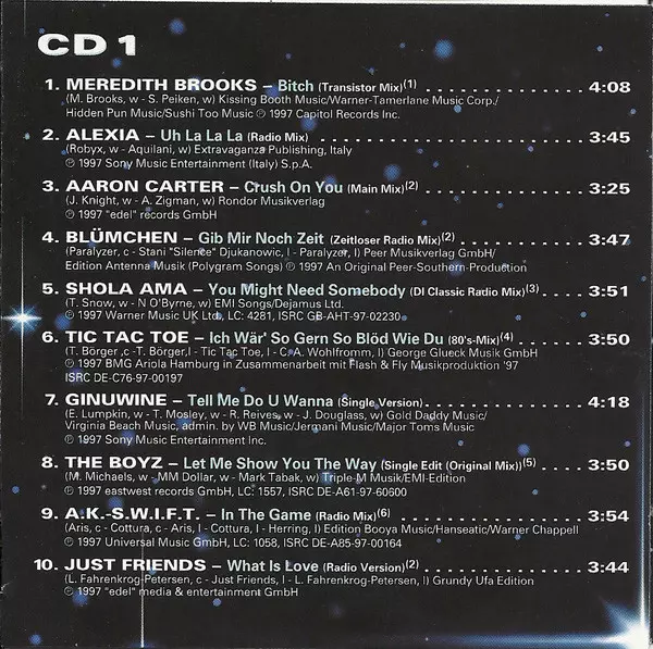| 1-1 | Meredith Brooks: Bitch (Transistor Mix) | 4:08 min | |