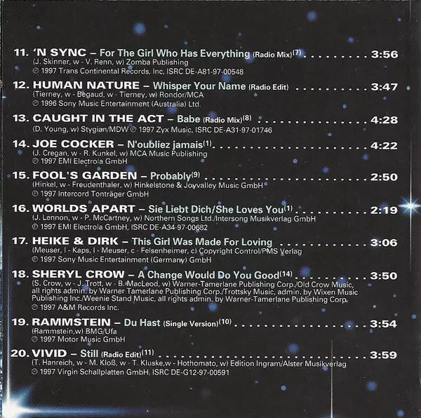 | 1-11 | *NSYNC: For The Girl Who Has Everything (Radio Mix) | 3:56 min | |