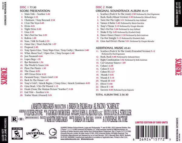 | Titel | Scarface (Expanded Motion Picture Soundtrack) LTD |