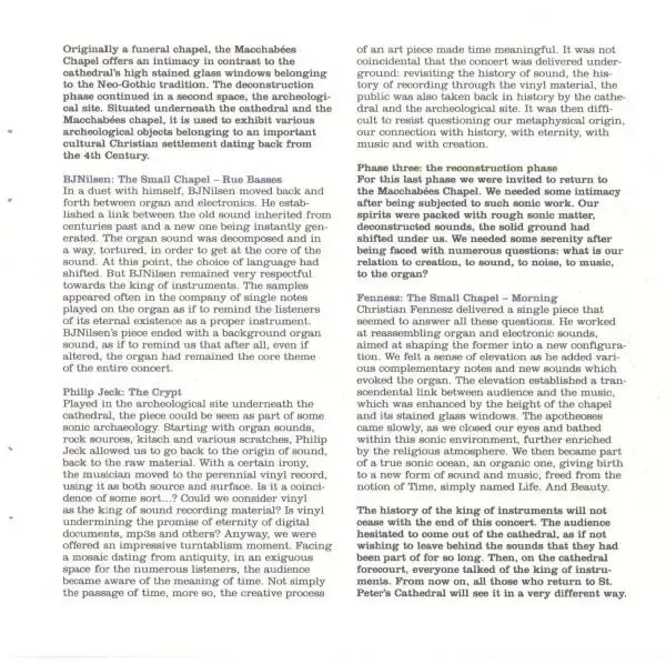 | 2-1 | Philip Jeck: The Crypt | 44:14 min | |
