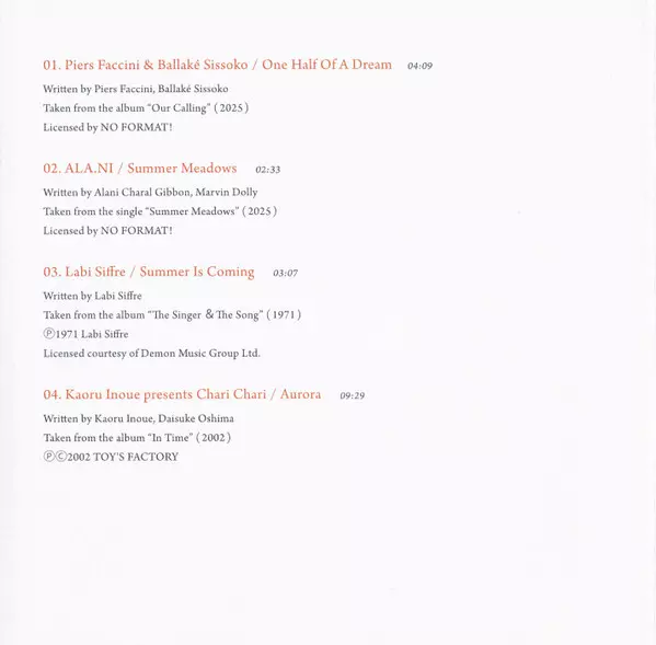 | A5 | Haruka Nakamura: Summer Daze (Saudade Rework) | 4:41 min | |